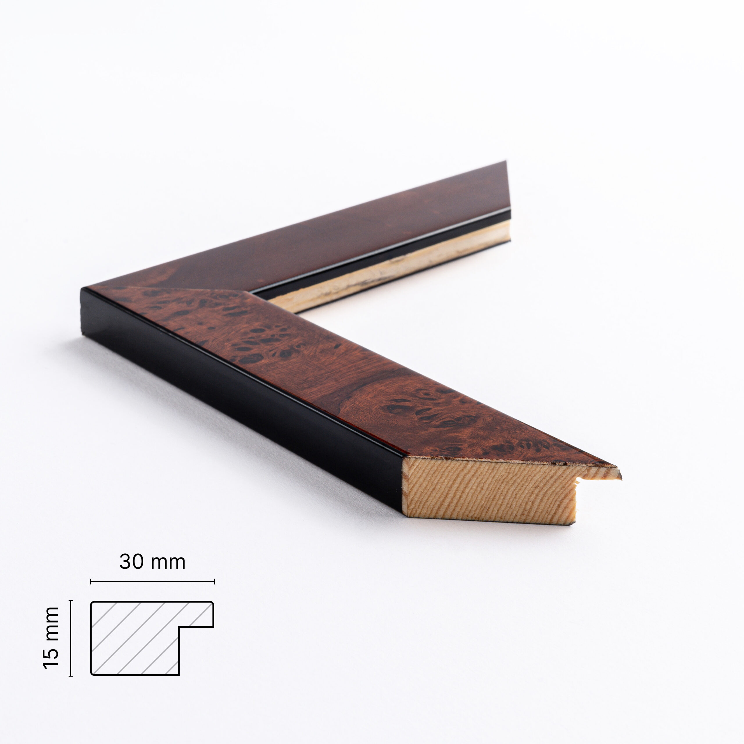Bred ramme i fugleøjetræ på specialmål er en 30 mm bred rammeprofil og egner sig ikke til de mindste rammer. Har du brug for det, så skal du i stedet kigge på denne profil.