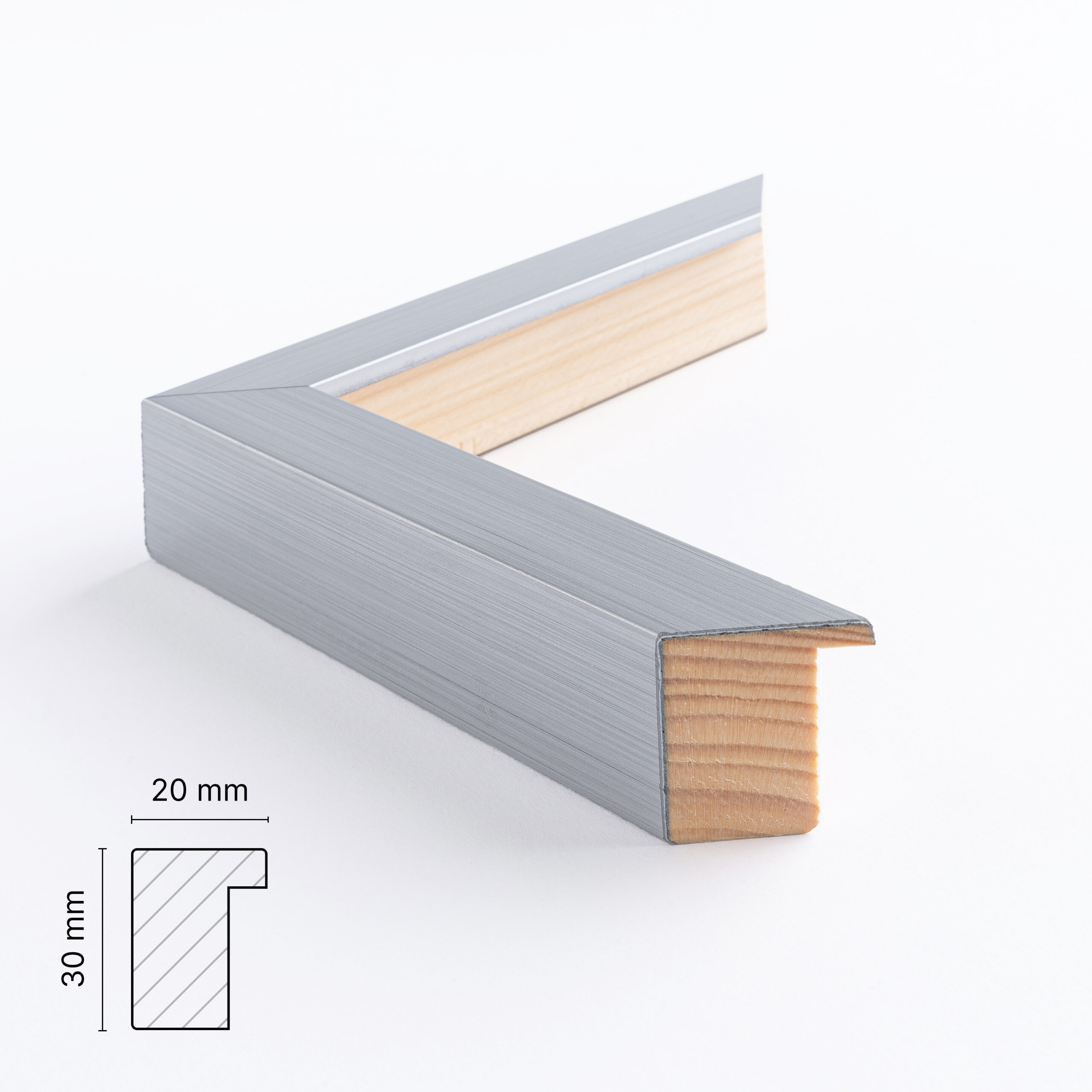 Denne rammeprofil som måler 20 mm på forsiden og 30 mm i dybden sælger vi til rammer i mange forskellige størrelser. Den egner sig nok ikke til de mindste billeder, da den så kommer til at virke for kraftig – men til gengæld er den kraftig nok til, at du kan bruge den helt op til str. 100×140 cm billeder.
