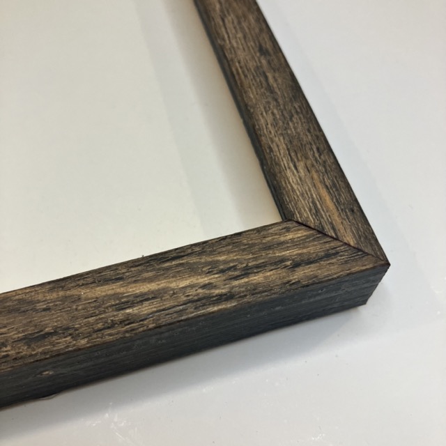 Flot fyrretræsramme i western look. Fronten på denne ramme er grov og struktureret – uslebet og fremstår i et westernlook. Mørk brun med sort i årene. Siden af rammen er derimod sortmalet. Ikke heldækkende men sådan lidt sløset, som et rigtigt stykke træ fra “the wild west”.