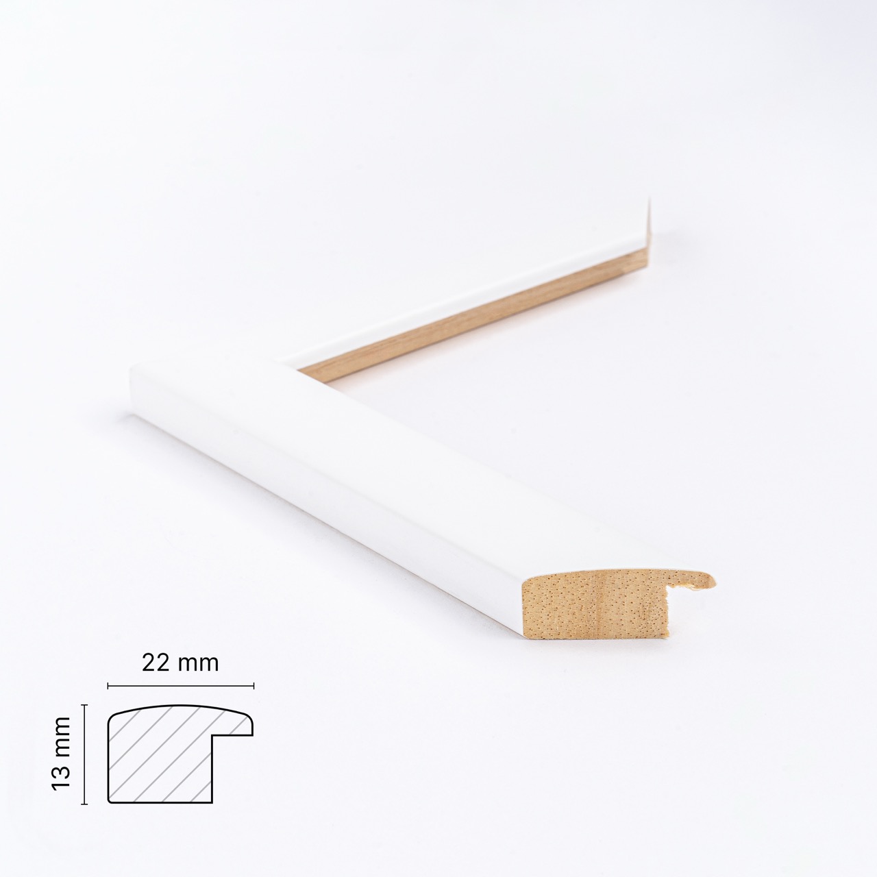 Denne rammeprofil som måler 22 mm på forsiden og 13 mm i dybden sælger vi til rammer i ikke alt for store størrelser. Den er til gengæld meget flot til motiver fra str. 60×80 og nedefter. Når du har et større motiv anbefaler vi, at du vælger en bredere profil. F.eks. en ramme som denne HER.
