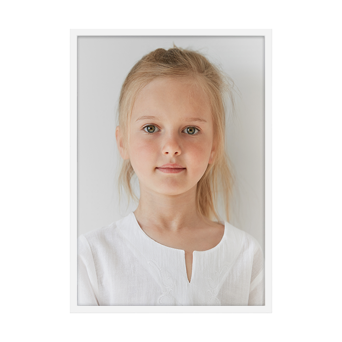 Har du fået bestilt et skolefoto i en af de små størrelser, er det en ramme som denne her du skal bruge. Det er en fin og smal ramme, dansk produceret i hvidmalet træ.