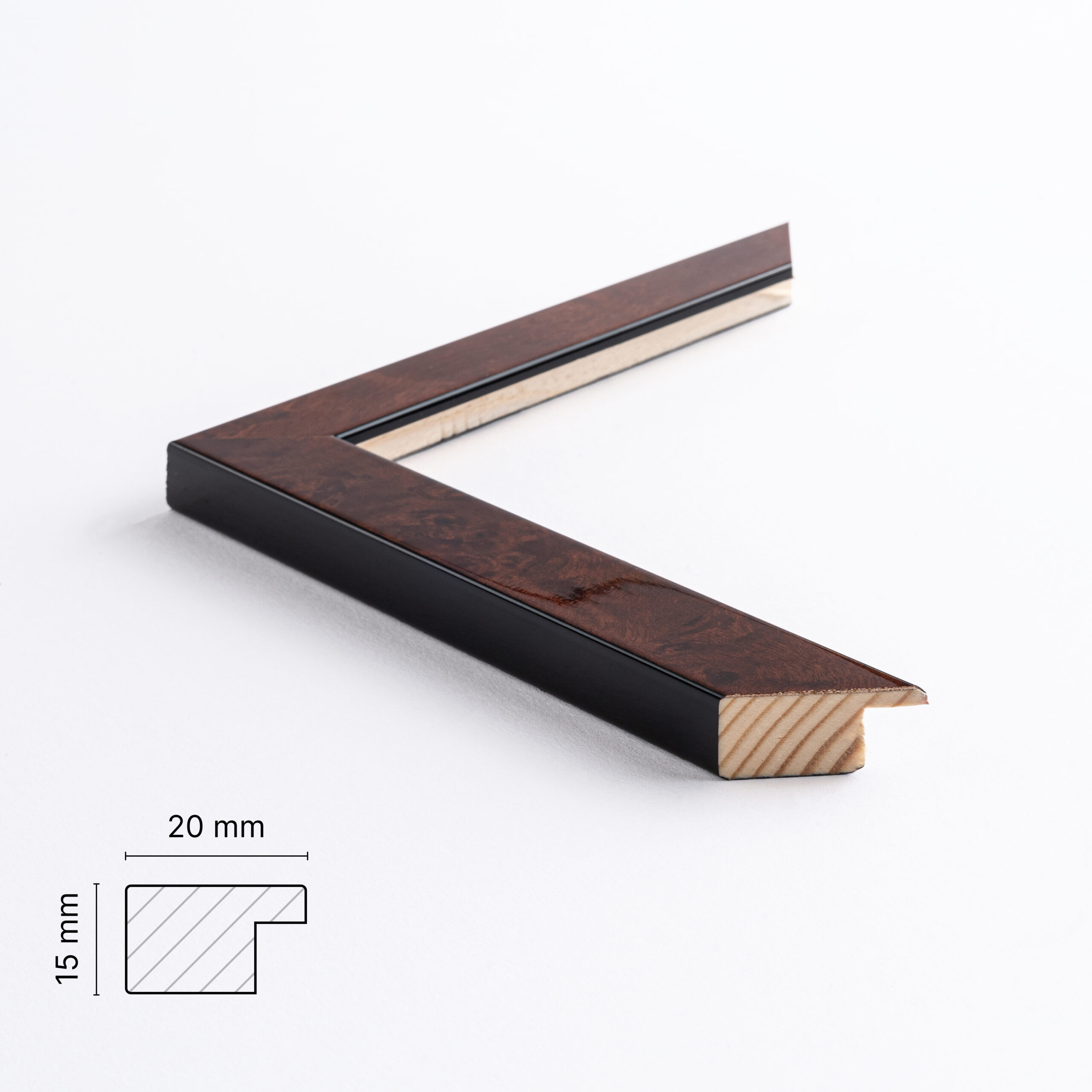 Denne rammeprofil som måler 20 mm på forsiden og 15 mm i dybden sælger vi til rammer i ikke alt for store størrelser. Den er til gengæld meget flot til plakater fra str. 50×70 og nedefter. Det er også det vi anbefaler – også af hensyn til holdbarheden i listen.