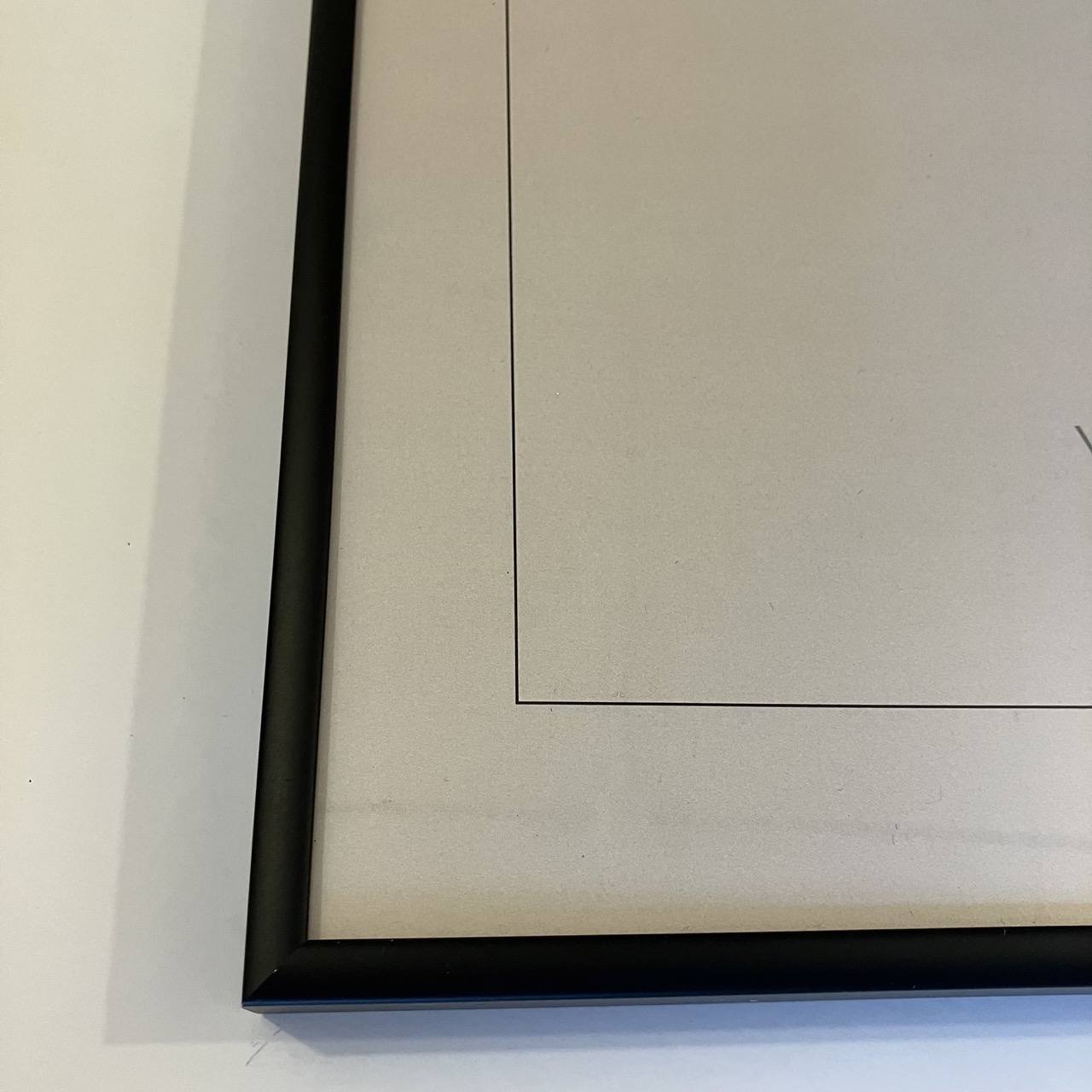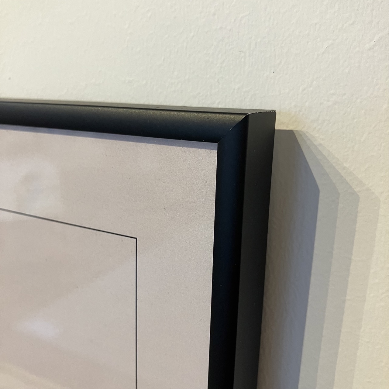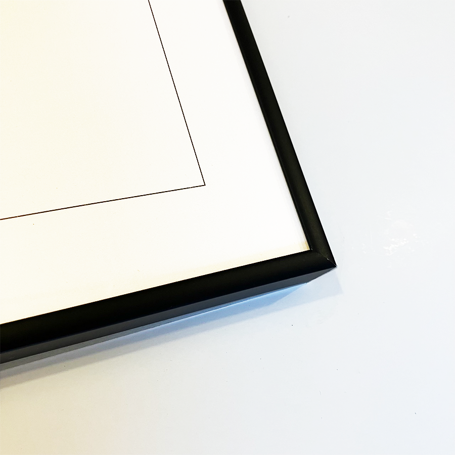 Denne profiltype kan bruges til alle størrelser. Fra de helt små til de allerstørste. Sort mat aluramme i specialmål er en smal, elegant rammeprofil.